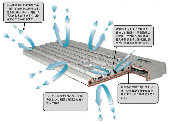 完全に丸洗いできるキーボードだ、丈夫な作りも売りのようです。