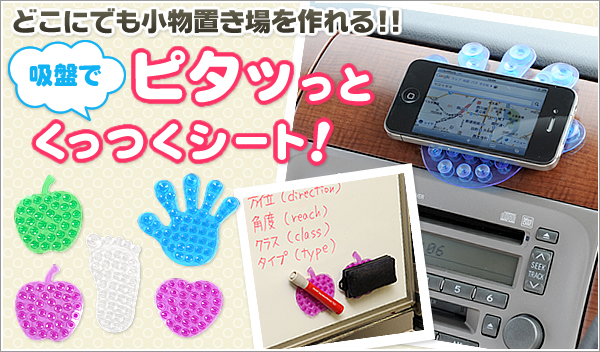 携帯電話や小物を吸盤でピタッとくっつけて、空いてるスペースを便利に使おう!