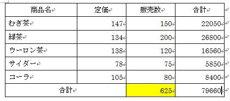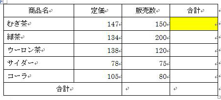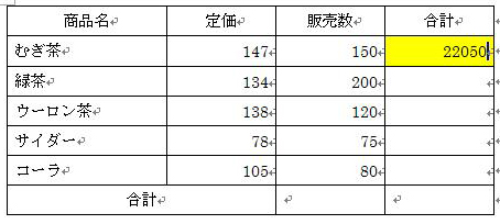 合計の計算式は、定価×販売数となりますので黄色いセルは、