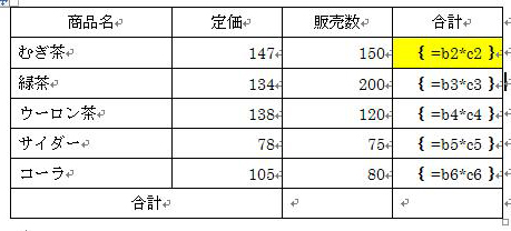 ※計算式を作成すると、数値データを参照して結果を求める「フィールドコード《が挿入されまが、通常フィールドコードは表示されず、結果が画面表示されます。