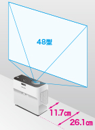 DLPの採用で60型までの大画面を投影できる他、iPadiやPhoneの映像を